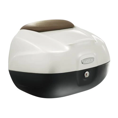 这款快开式尾箱,具备37升容量(可容纳一个全盔或两个小型半盔)。尾箱与车辆喷漆颜色相同。并配有与座椅相同材质和颜色的舒适背部支撑。上面印有 Piaggio 徽标。在标准行李架上安装时需要安装工具包。